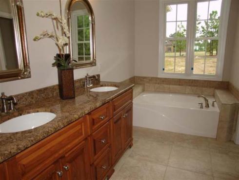 Relax in the oversized jaccuzi tub in the evening after a hard day's work. The master bathroom features stylish ceramic floors and decorative ceramic shower stall, upgraded plumbing fixtures, and a comfort height commode for your convenience. With "his and hers" sinks sitting atop custom cabinets, you'll never have to wait your turn to use the sink and mirror!